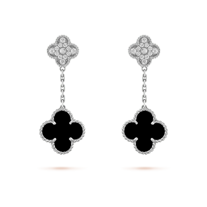 ˇGilded EraˇCLOVER 2 MOTIFS DIAMOND ONYX EARRINGS SILVER