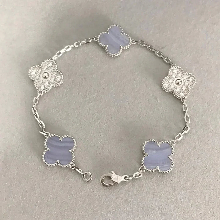 Blue Chalcedony Five-Flower Bracelet - Elegance and Good Luck