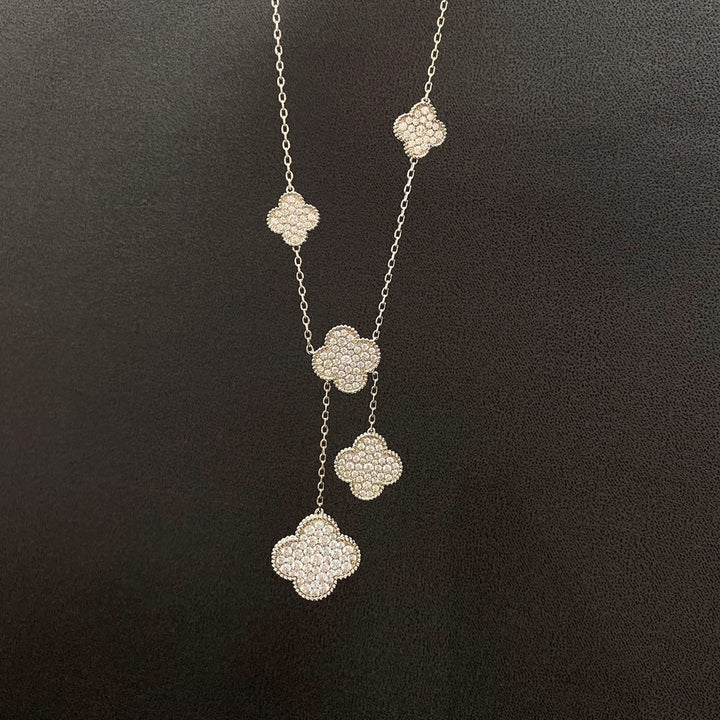 ˇGilded EraˇCLOVER 5 MOTIFS SILVER DIAMONDS NECKLACE
