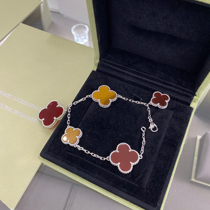 ˇGilded EraˇCLOVER 5 MOTIFS CARNELIAN TIGER EYE BRACELET