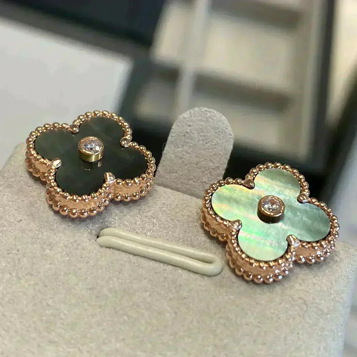 ˇGilded EraˇCLOVER MEDIUM 1 MOTIFS GRAY MOP DIAMOND EARRINGS