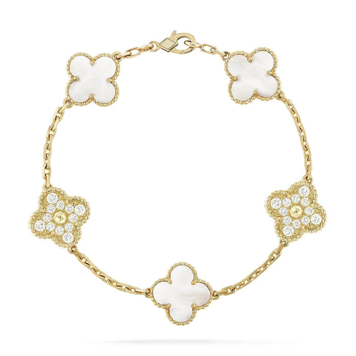 ˇGilded EraˇCLOVER BRACELET 5 MOTIF WHITE MOP DIAMOND