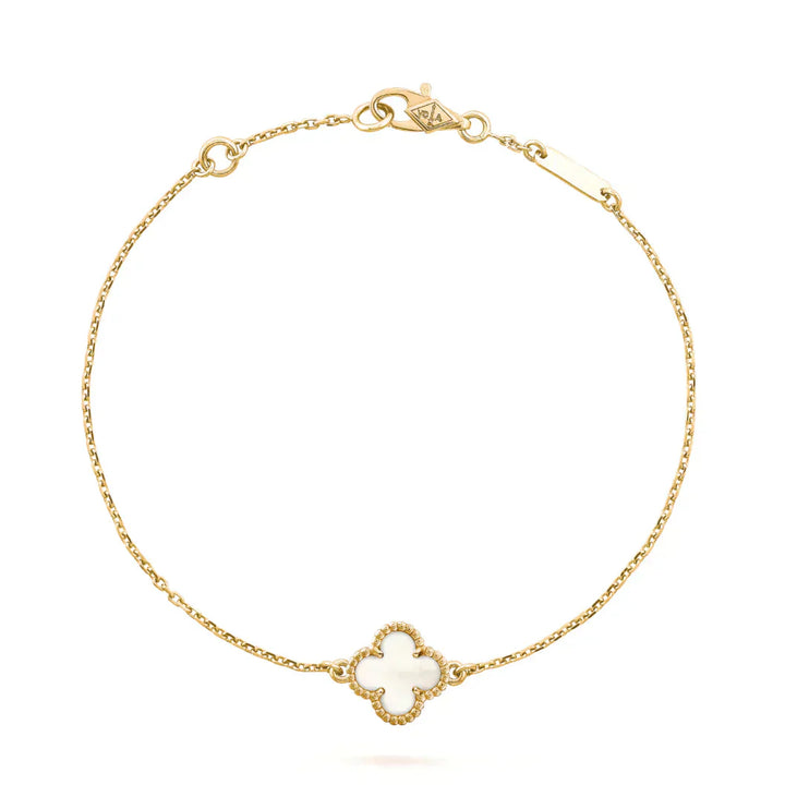 ˇGilded EraˇCLOVER WHITE MOP SINGLE FLOWER BRACELET