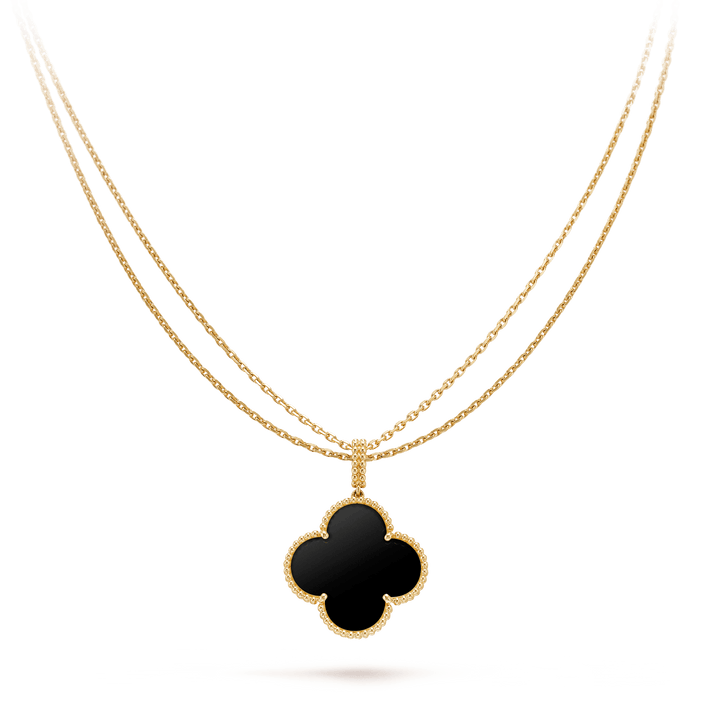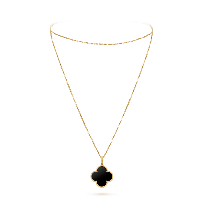 ˇGilded EraˇCLOVER 25MM GOLD ONYX BIG CLOVER NECKLACE