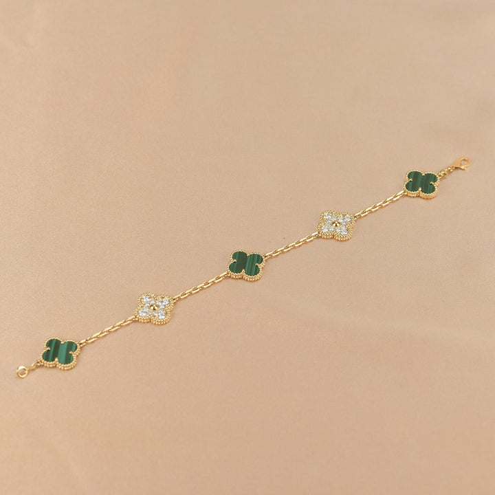 ˇGilded EraˇCLOVER 5 MOTIF MALACHITE DIAMOND BRACELET