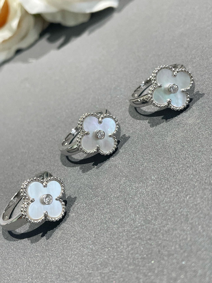 ˇGilded EraˇCLOVER SILVER MOP DIAMOND RING