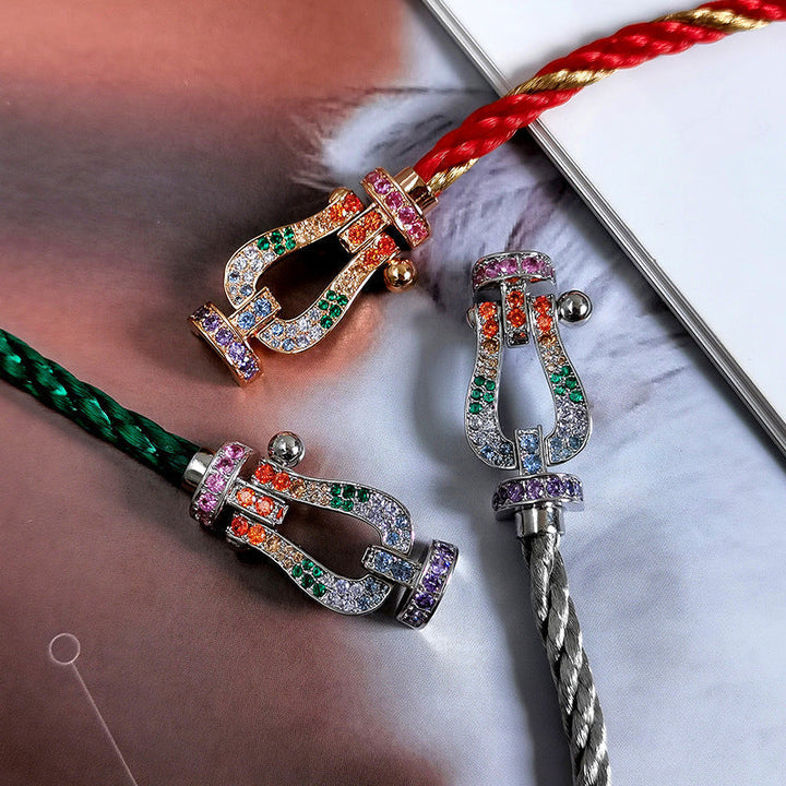 ˇGilded EraˇFORC LARGE HORSESHOE COLORED DIAMOND BRACELET SILVER
