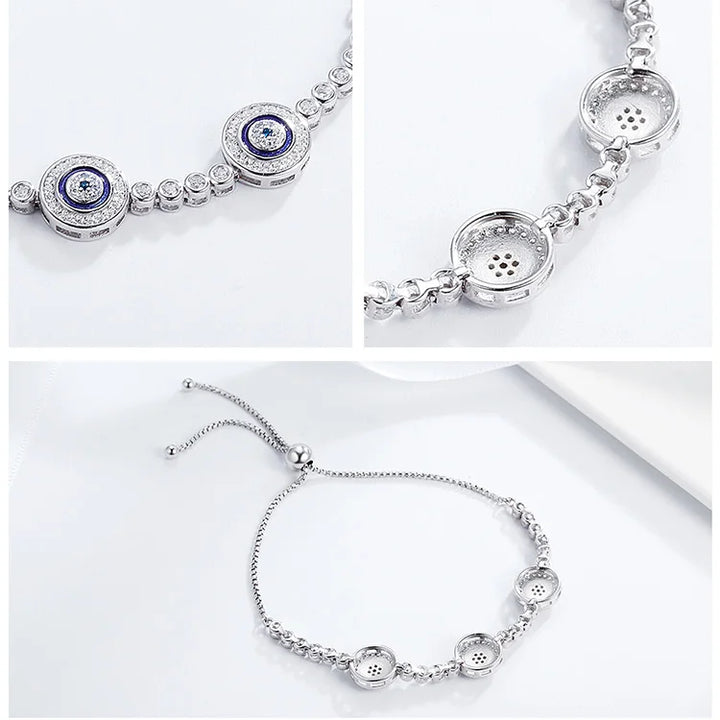 ˇGilded EraˇSilver Luxury Round Blue Evil Eyes Clear Cubic Zircon Crystal